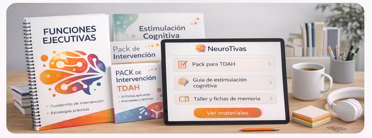 Intervenimos en atención, memoria y funciones ejecutivas, con un enfoque claro: que lo trabajado se traduzca en la vida cotidiana.